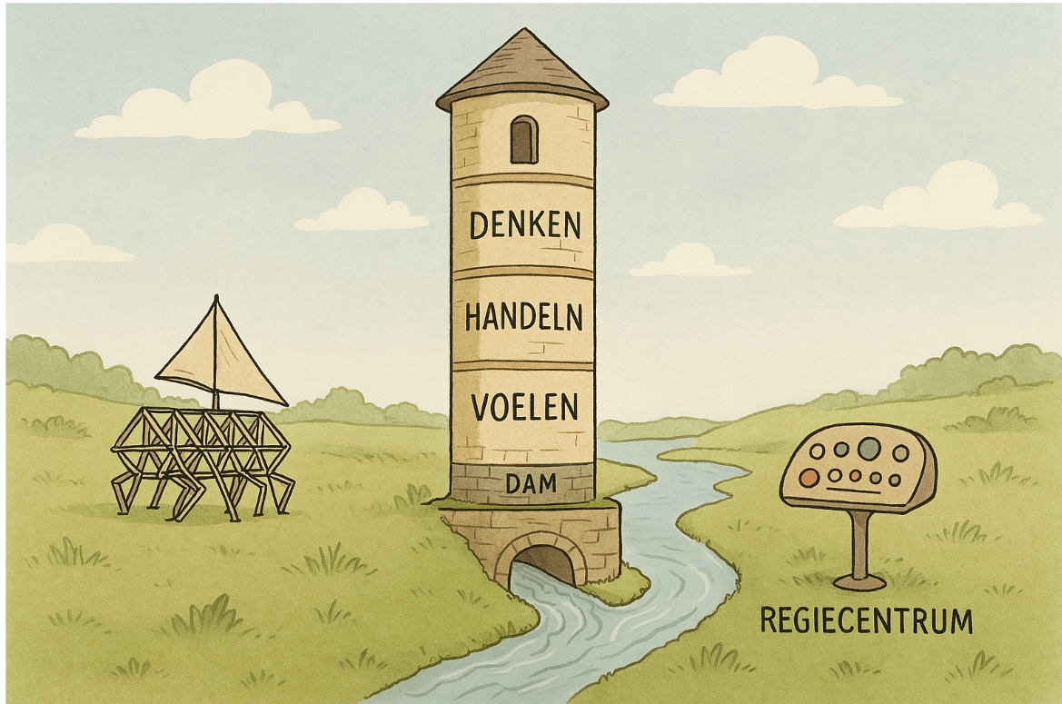 De twee driehoeken in dit model verbinden denken, voelen en handelen (eerste niveau) met de context van persoon, beroep en werksituatie (tweede niveau). In begeleidingsgesprekken teken ik deze regelmatig uit om samen inzicht te krijgen in waar het schuurt. Bijvoorbeeld wanneer je gedrag niet overeen komt met wat je denkt of voelt. Of wanneer dat wat er in je werkorganisatie gebeurt botst met jou als persoon. In groepsbegeleiding gebruik ik het model om deelnemers uit te nodigen vragen te stellen vanuit de driehoek, wat leidt tot verdiepende reflectie en uitwisseling. Voor mij sluit het naadloos aan bij het thema afstemmen: afstemmen op jezelf, op je denken en voelen, op de ander én op de context waarin je werkt.Zijnsgericht Coachen – Korthagen & Nuijten (2020)